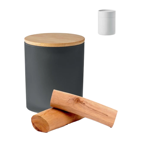 Apportez chaleur et style à votre intérieur avec cette bougie en verre à couvercle de bambou, disponible en 4 coloris. Cire végétale, format pratique : 8,5 × 8,5 × 11 cm.