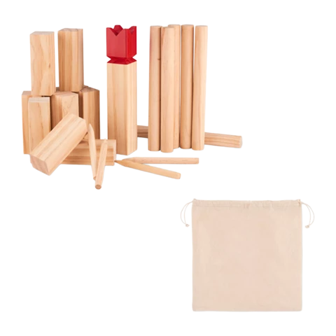 Profitez du plein air avec ce jeu suédois de lancer de bois, à la fois amusant et divertissant. Idéal pour les familles ou les amis, ce jeu de stratégie et de précision vous assure des heures de plaisir divertissant. Le but est de faire tomber les bâtons en bois, et finalement, le roi ! Le tout est fourni dans un sac en coton à cordon, parfait pour un déplacement aisément.
