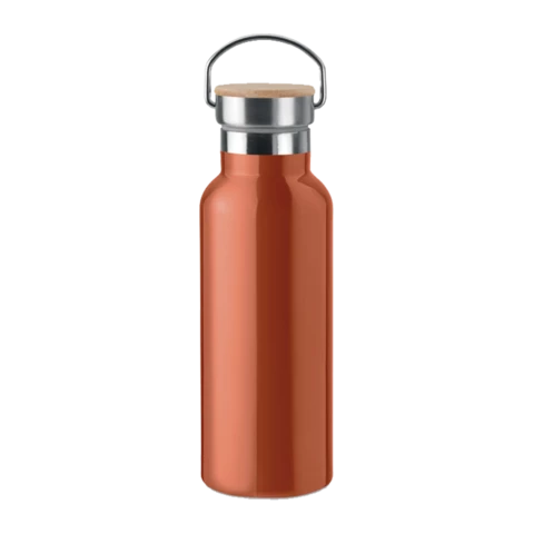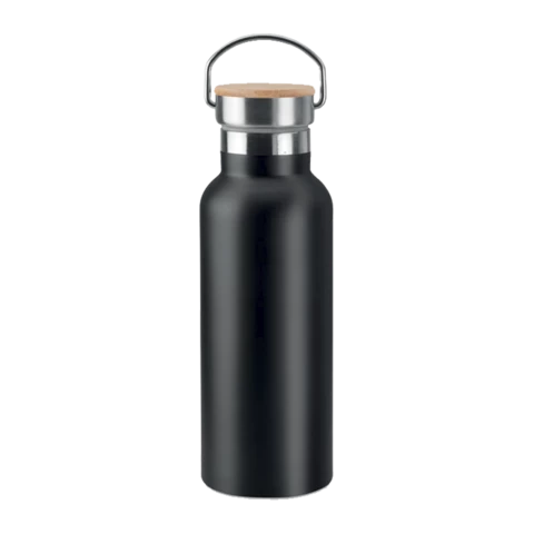 Optez pour l'élégance et la responsabilité écologique avec cette bouteille isotherme à double paroi. Sa structure en acier inoxydable maintient votre boisson à la température idéale, tandis que son couvercle en bambou muni d'une poignée lui apporte un aspect naturel et singulier. Doté d'une capacité de 500 ml et anti-fuite, c'est le complément parfait pour vos journées.