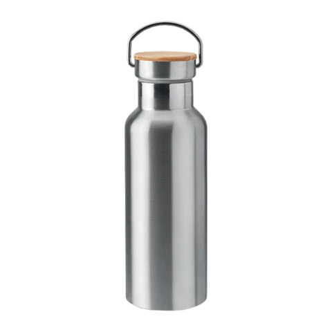 Double paroi en acier inoxydable avec couvercle en bambou