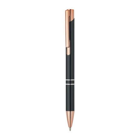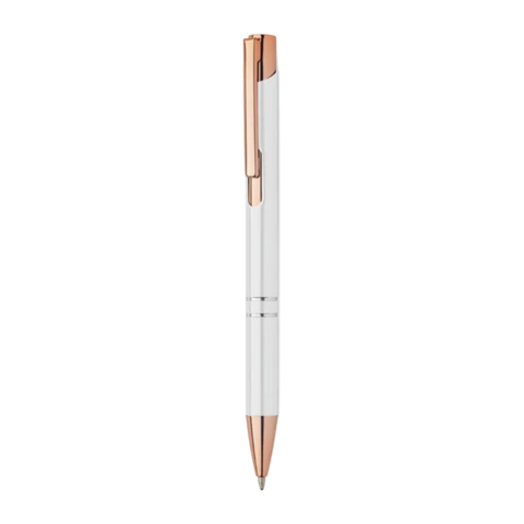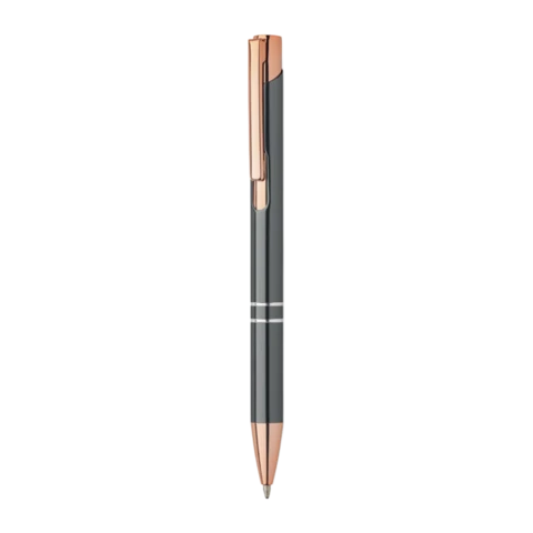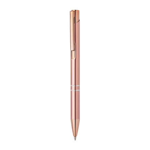 Choisissez un style sophistiqué et respectueux de l'environnement. Ce stylo à mécanisme de pression est conçu en aluminium recyclé, rehaussé par des accents raffinés dorés rose. Avec son encre bleue, il est l'accompagnateur parfait pour vos écrits.